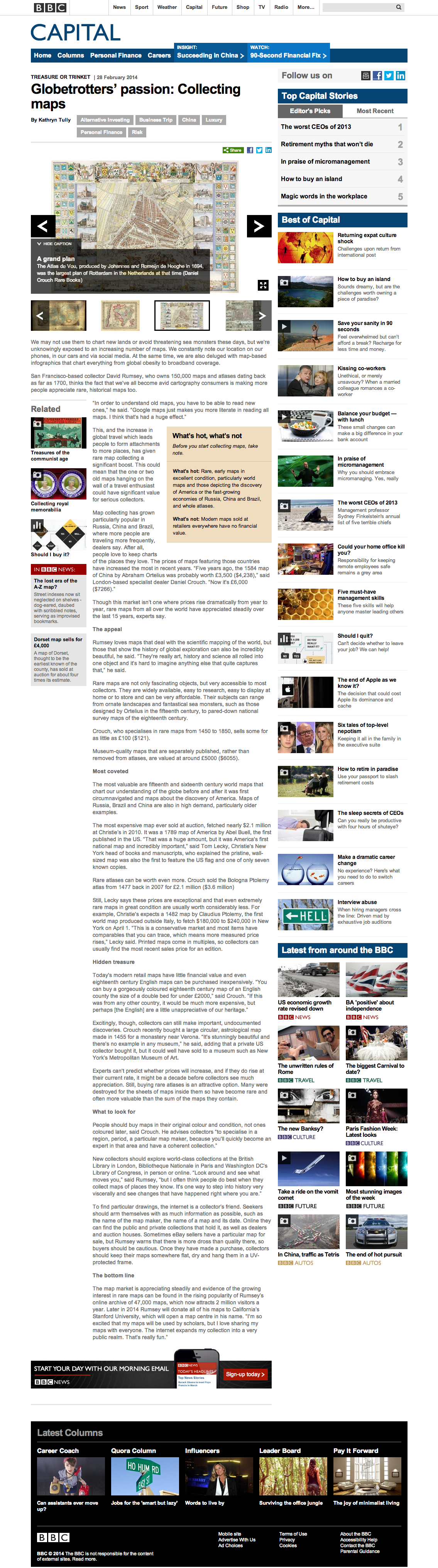 Globetrotters passion: Collecting maps BBC Capital, February 2014 |