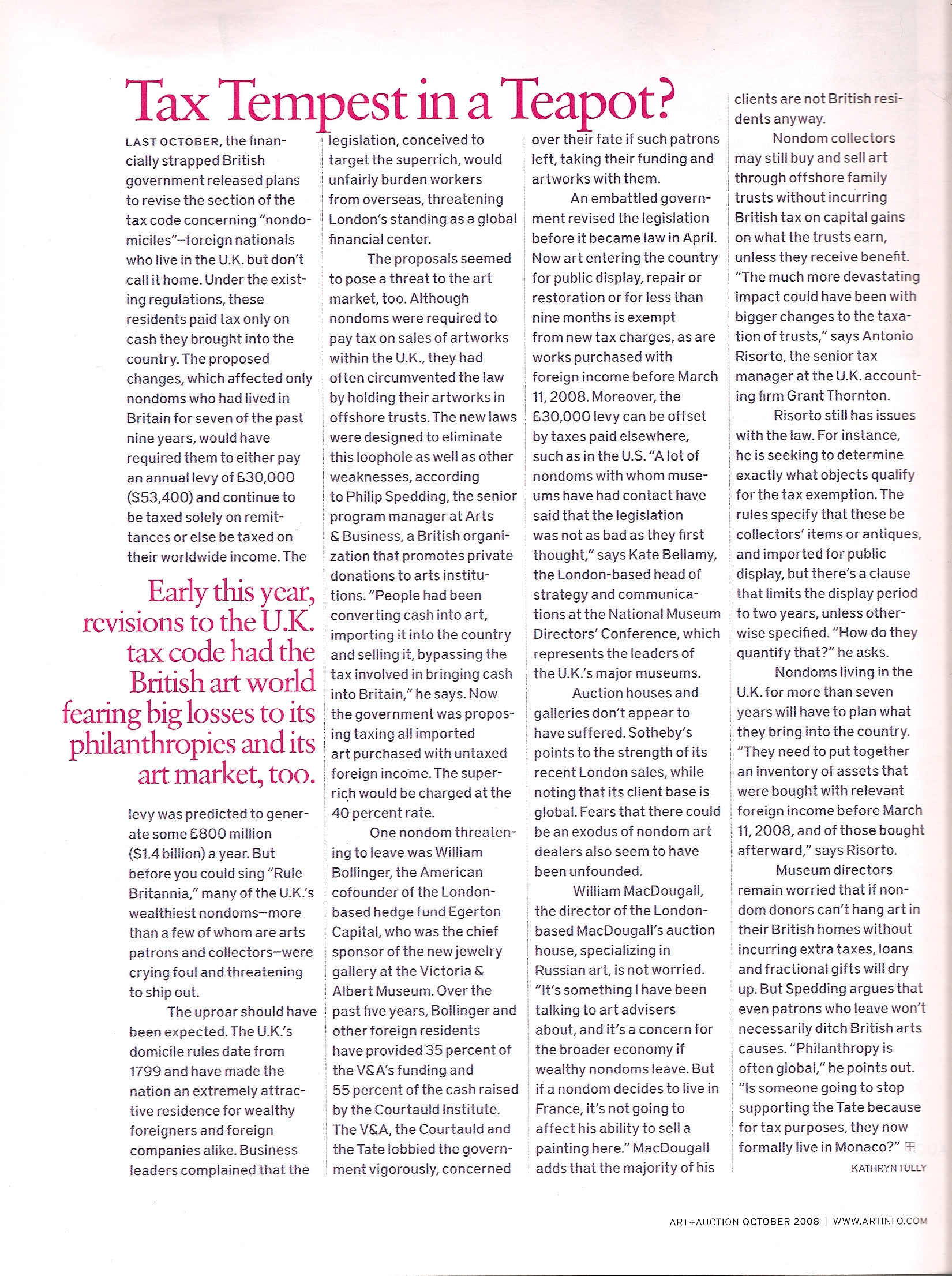 Tax Tempest in a Tea Pot? Art + Auction, October 2008
