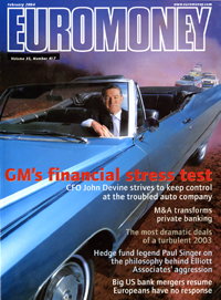 Yet even if GMAC continues to perform, will the auto business be able to contribute to the hefty overall increase GM wants in earnings per share of between $6 and $6.50 in 2004? GM also wants to grow market share in all its key regions and thinks it will break even or be slightly up in Europe, reduce losses in Latin America and see a further 40% growth in Asia.